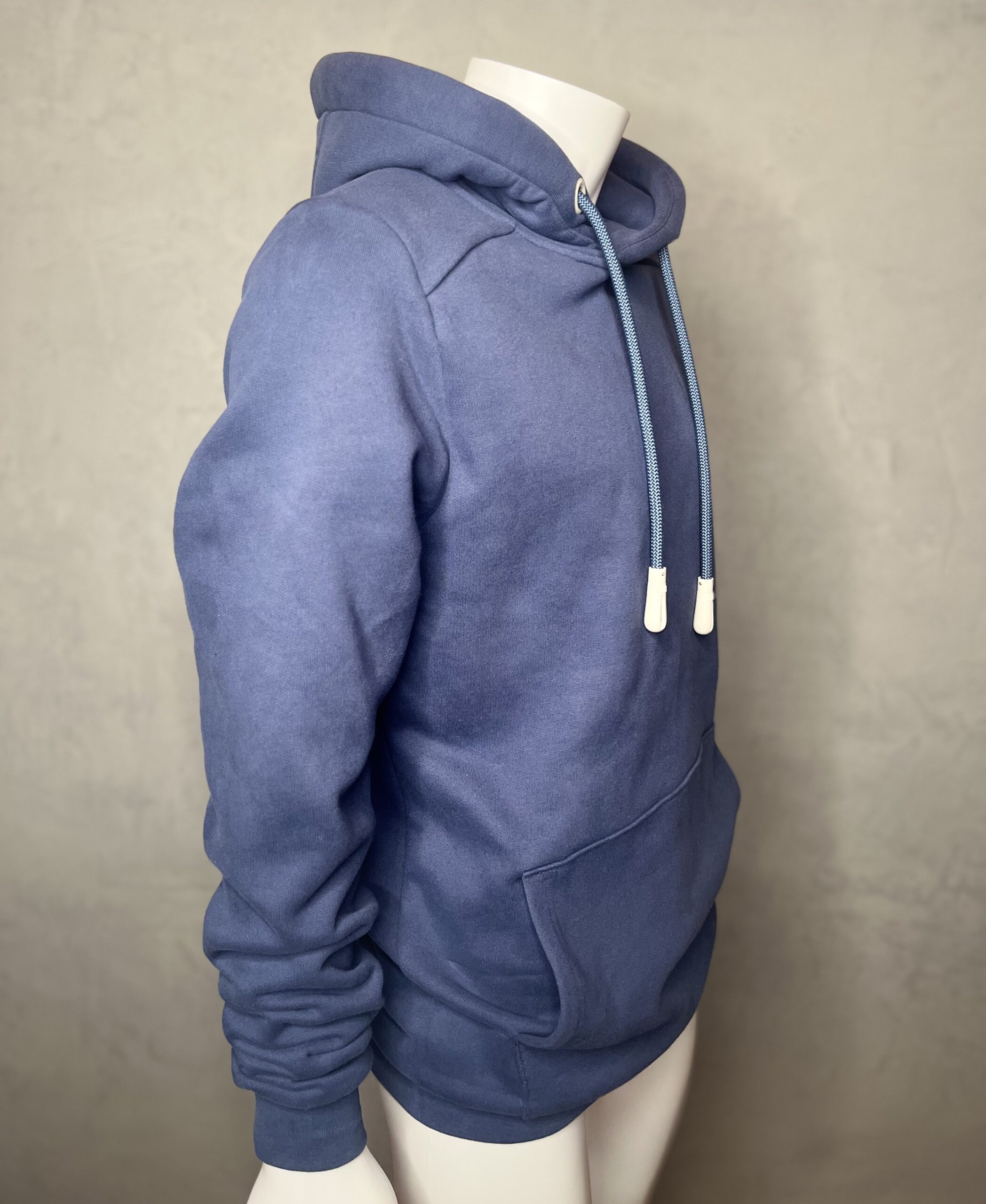 Der Hoodie ist nicht vorgewaschen und läuft nach der ersten Wäsche einmalig um 7 cm ein. Sowohl am Saum, als auch an den Ärmeln. Danach behält der Hoodie seine Form, weil einer der größten Vorteile von Pima-Baumwolle ihre innere Spannung und Formbeständigkeit ist.